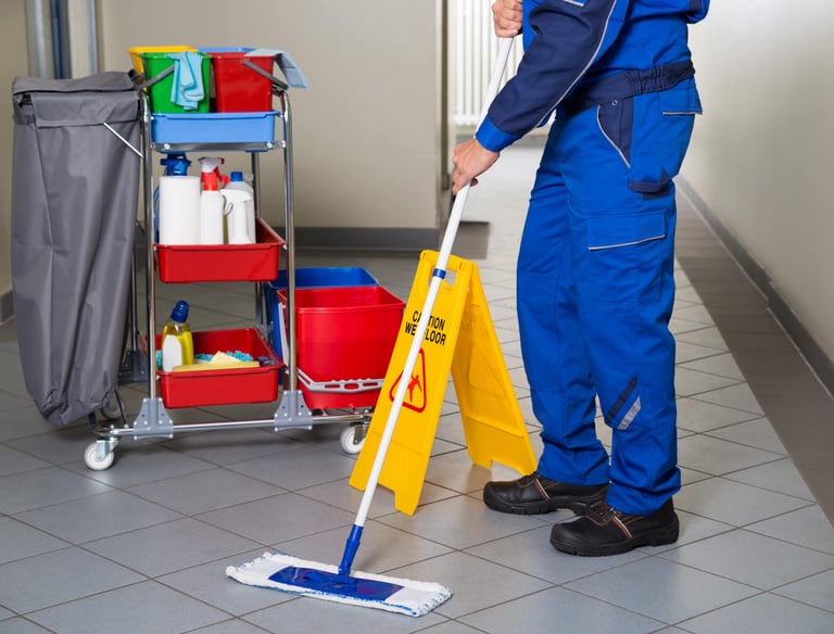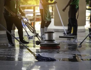 Specialized cleaning staff ensuring high standards in retail environments for customer satisfaction.